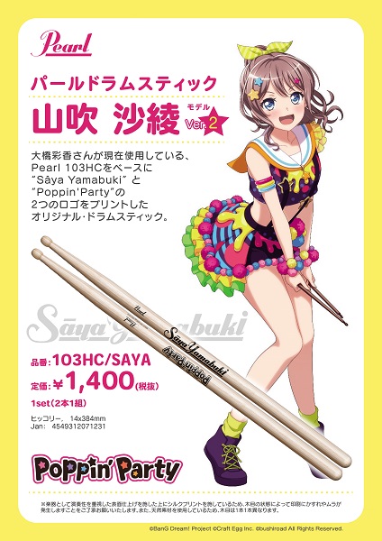 大好評のパールドラムスティック 山吹沙綾モデルのVer.2が発売決定☆