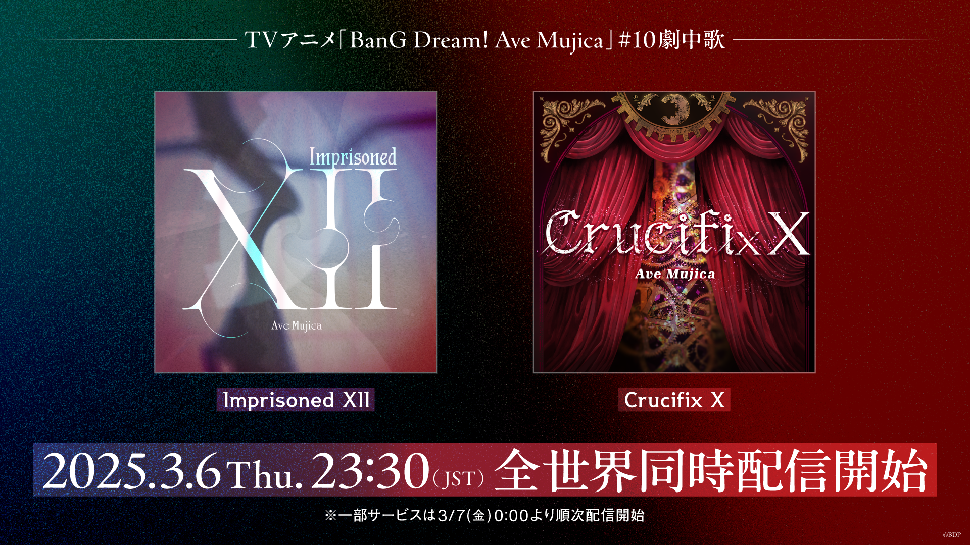 バンドリ!発のメタルバンド「Ave Mujica」より、TVアニメ『BanG Dream! Ave Mujica』#10 挿入歌、「Imprisoned XII」「Crucifix X」の2曲が全世界同時配信開始いたしました。