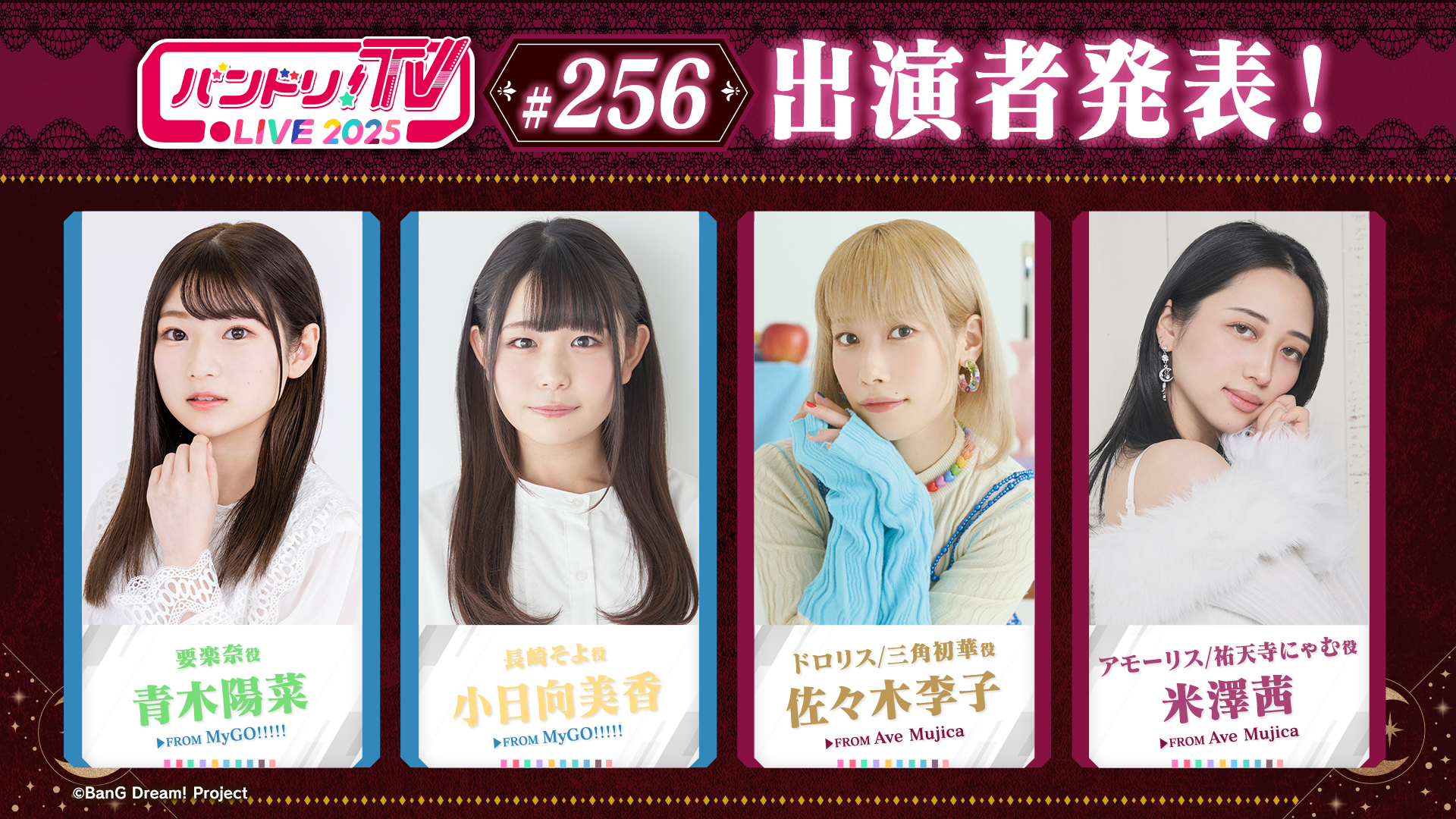 「バンドリ!TV LIVE 2025」#256 ではTVアニメ「BanG Dream! Ave Mujica」のご感想や、ご出演のキャストさんへのメッセージを募集中!