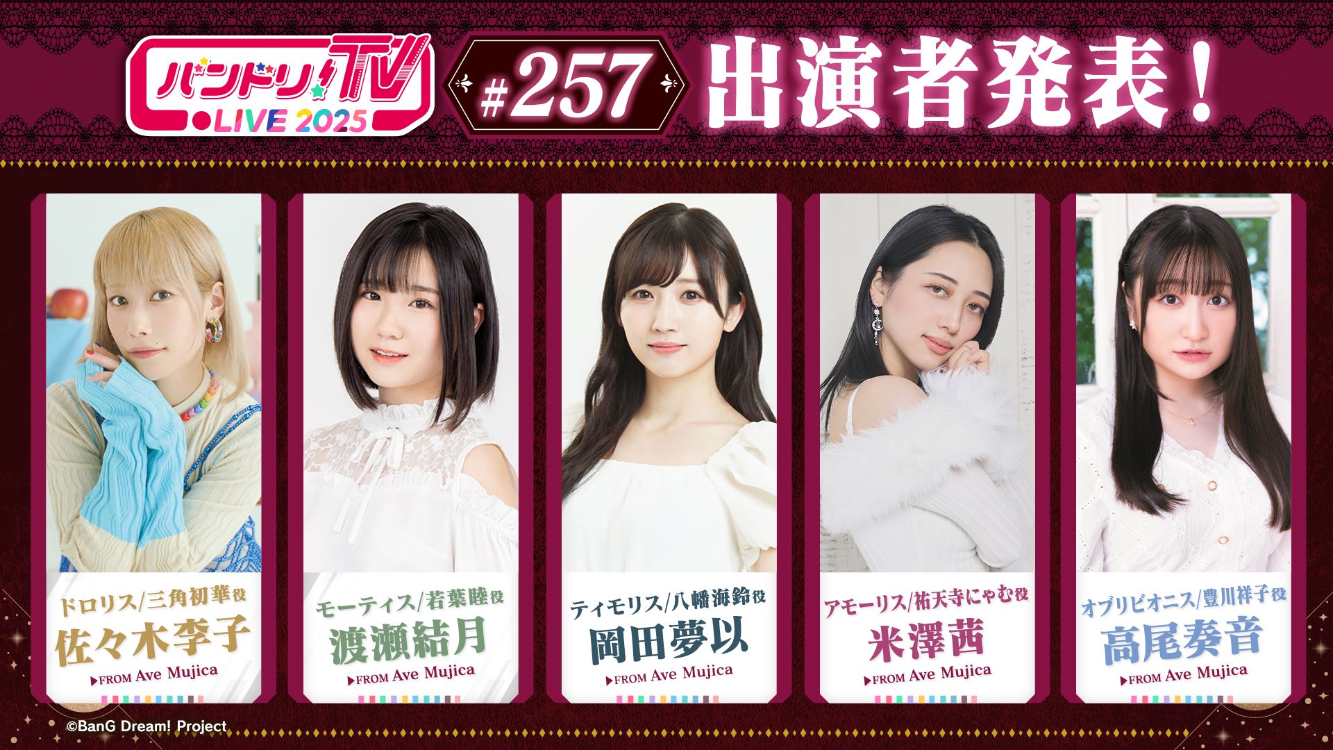 「バンドリ!TV LIVE 2025」#257 ではTVアニメ「BanG Dream! Ave Mujica」のご感想や、ご出演のキャストさんへのメッセージを募集中!