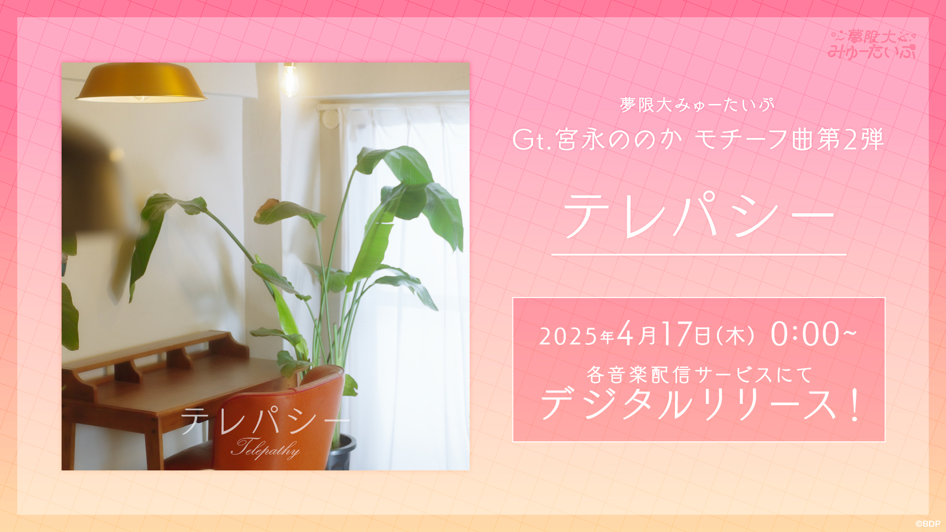 各音楽配信サービスにて夢限大みゅーたいぷ「テレパシー」が4月17日(木)にデジタルリリース!