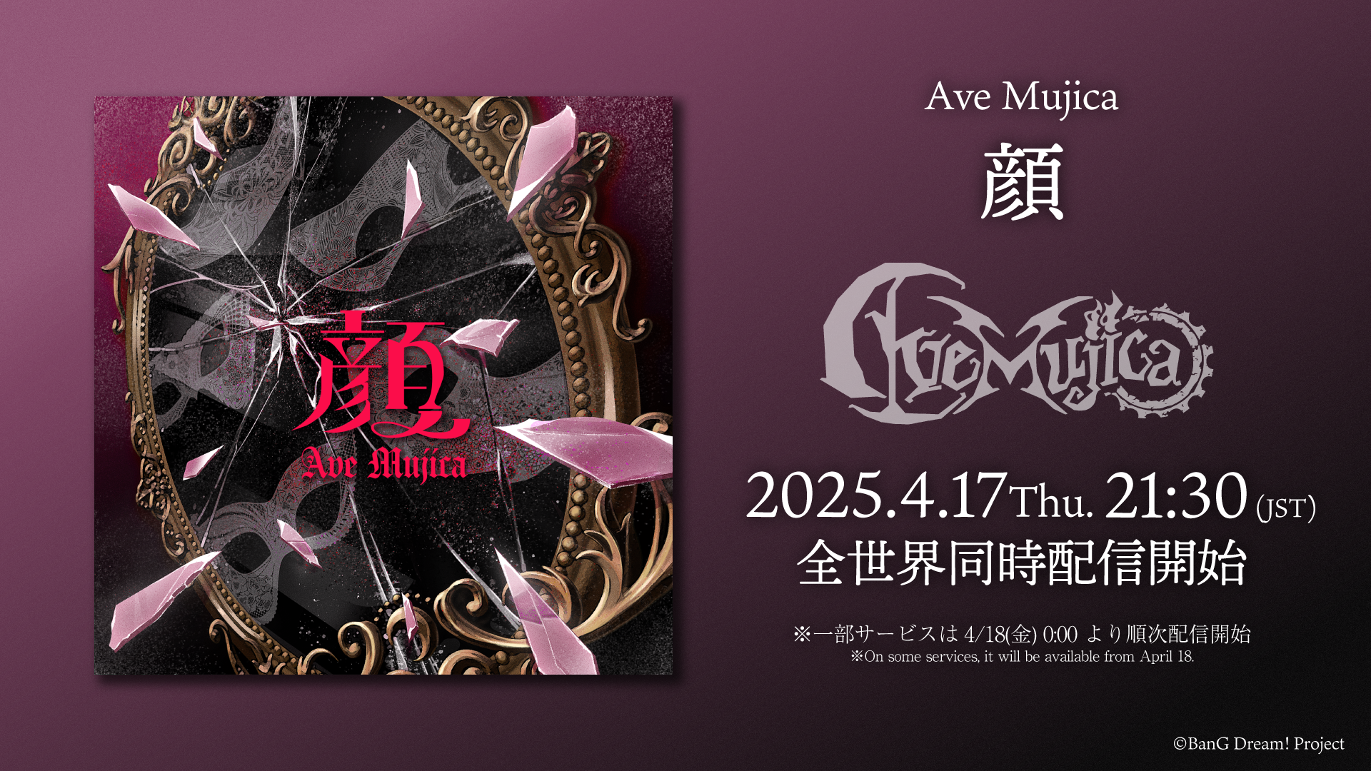 バンドリ!発のメタルバンド「Ave Mujica」より、TVアニメ「BanG Dream! Ave Mujica」最終話挿入歌「顔」がデジタルリリース。