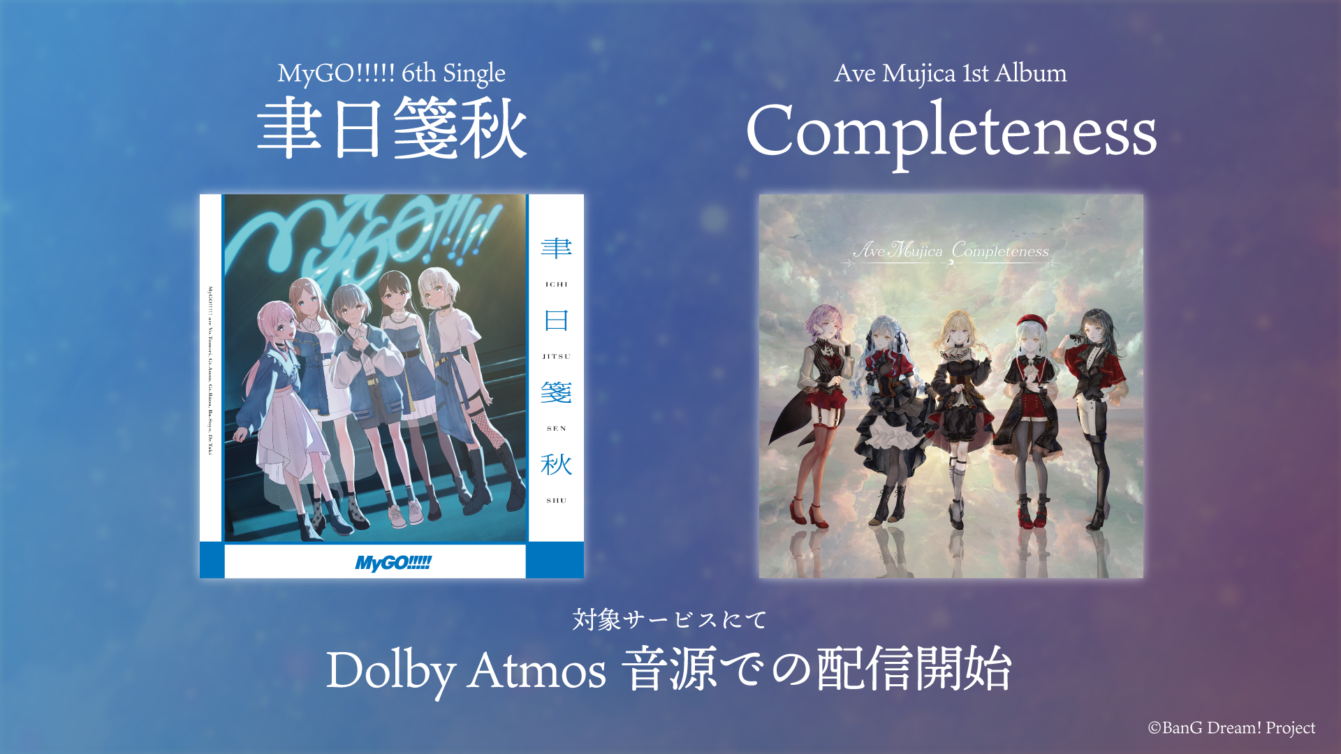 4月23日(水)に、MyGO!!!!! 6th Single「聿日箋秋」、Ave Mujica 1st Album「Completeness」の音楽配信開始を記念して、それぞれに収録されている楽曲のDolby Atmos音源の音楽配信がスタートしました。
