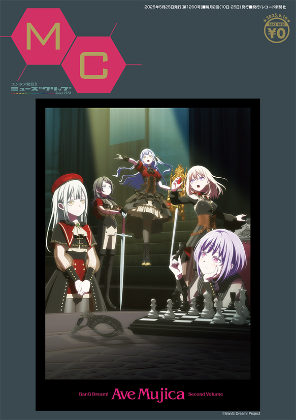 フリーペーパー『MC(ミューズクリップ)』5/25発行号は、TVアニメ「BanG Dream! Ave Mujica」Blu-rayジャケットが表紙!