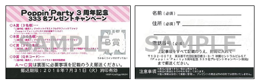 Poppin'Party 活動3周年を記念し、333名へ豪華プレゼントが当たるキャンペーンを実施決定!