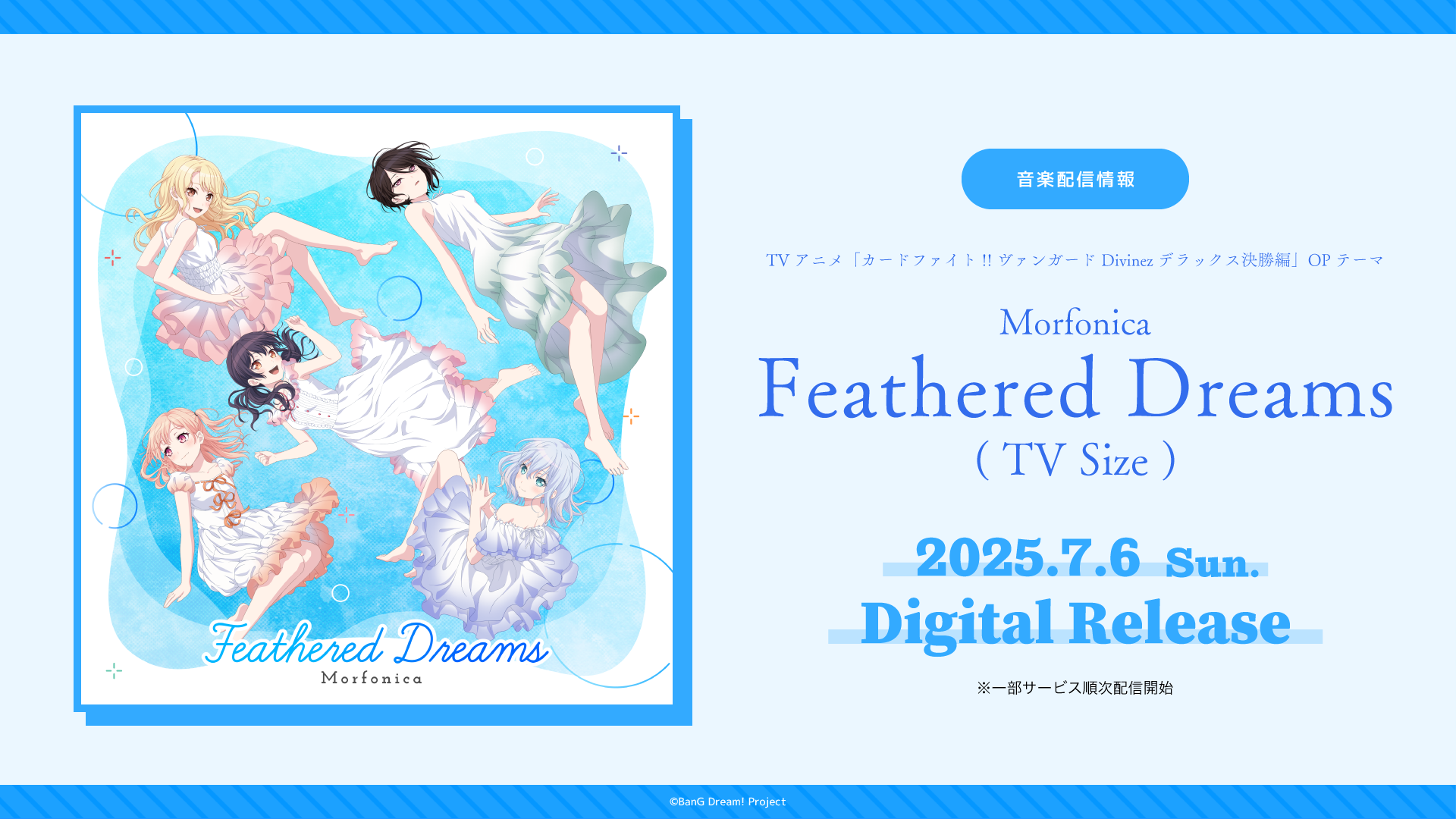 Morfonica 8th Single「Feathered Dreams」の表題曲であり、2025年7月より放送のTVアニメ「カードファイト!! ヴァンガード Divinez デラックス決勝編」のOPテーマがTV Sizeでデジタルリリース!