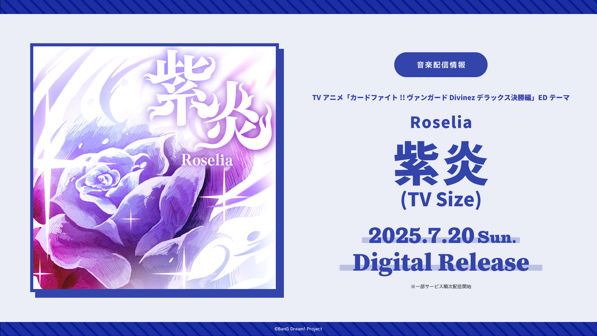 EDテーマ2曲目はRoseliaの新曲「紫炎」。本楽曲がTV Sizeでデジタルリリース!