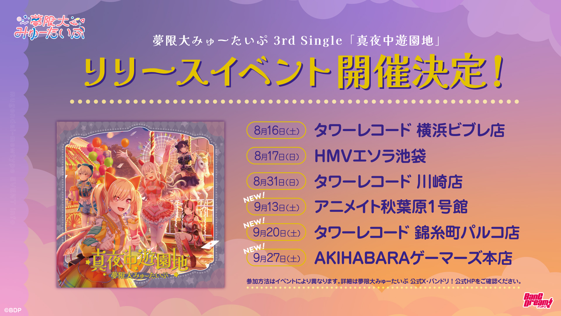 2025年9月3日(水) 夢限大みゅーたいぷ 3rd Single「真夜中遊園地」のリリースを記念し、「アンロック・ジ・アチアチ遊園地」と「特典お渡し会」の開催が決定しました!
