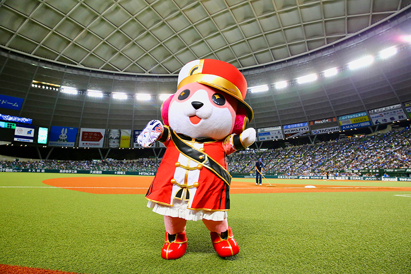 この日の対戦カードは埼玉西武ライオンズ×オリックス・バファローズ。球場には、コラボイラストを使用した横断幕やのぼり、ポスターなどが多数掲出されました。