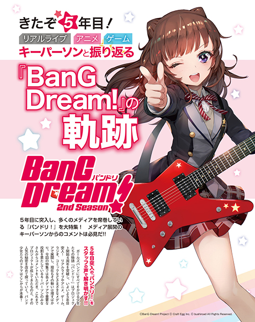 巻頭では、5年目に突入した「バンドリ!」プロジェクトの軌跡を大特集。