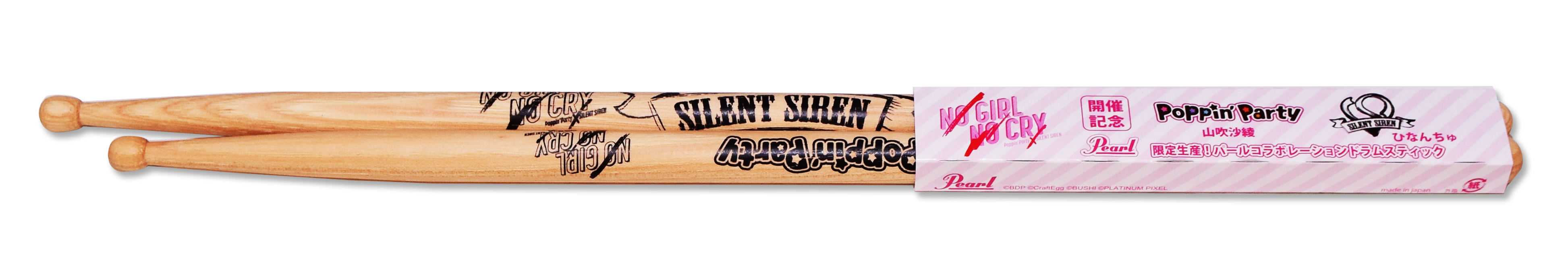 News 2019.05.16グッズ 対バンライブ「NO GIRL NO CRY」開催記念! 山吹沙綾&ひなんちゅ コラボドラムスティック発売決定! 対バンライブ「NO GIRL NO CRY」開催を記念して、Poppin’Party/山吹沙綾モデル×SILENT SIREN/ひなんちゅモデルを1本ずつ合わせて1セットにした特別なコラボドラムスティックセットをライブ会場にて発売します! 商品名:山吹沙綾&ひなんちゅ パールコラボレーションドラムスティック 価格:1,500円(税別) SHARE