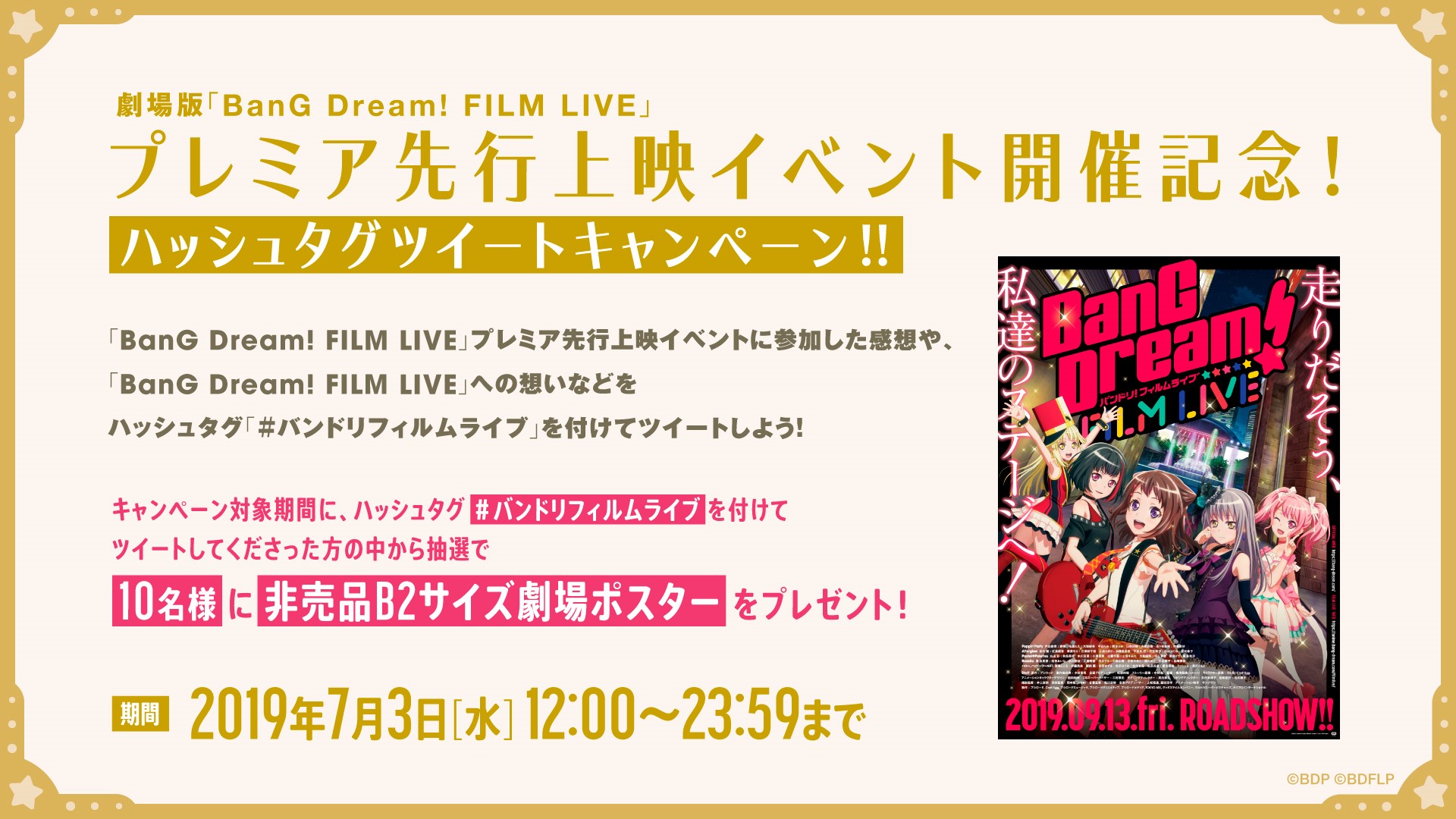 2019年7月3日(水)開催、劇場版「BanG Dream! FILM LIVE」プレミア先行上映イベントを記念して