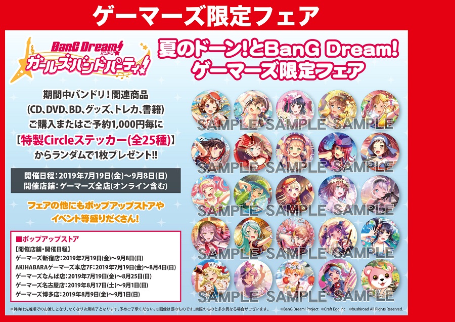 7月19日(金)~9月8日(日)の間、全国のゲーマーズにてBanG Dream!の限定フェア開催!