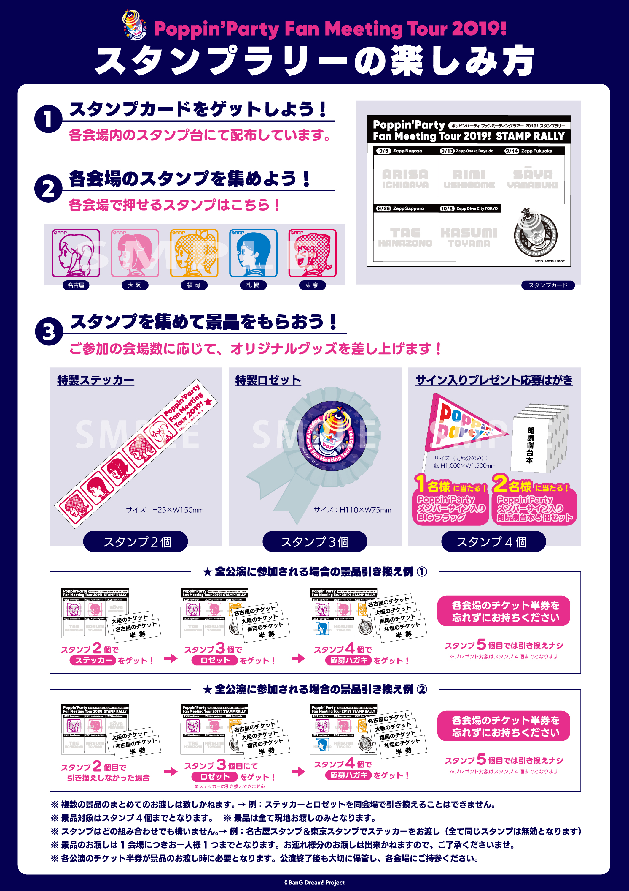・スタンプの押し忘れ、プレゼントの受け取り忘れに伴う後日対応や郵送対応は致しかねます。必ず公演当日にスタンプ押印や景品受け取りをお願い致します。