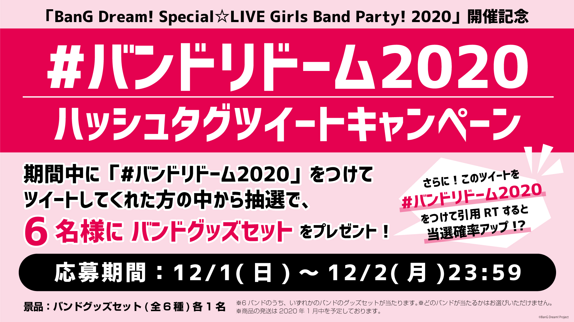 「BanG Dream! Special☆LIVE Girls Band Party! 2020」開催を記念して、ハッシュタグツイートキャンペーンを実施!