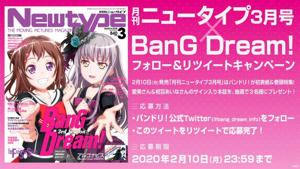 「月刊ニュータイプ3月号」は、バンドリ!が初表紙&巻頭特集!
