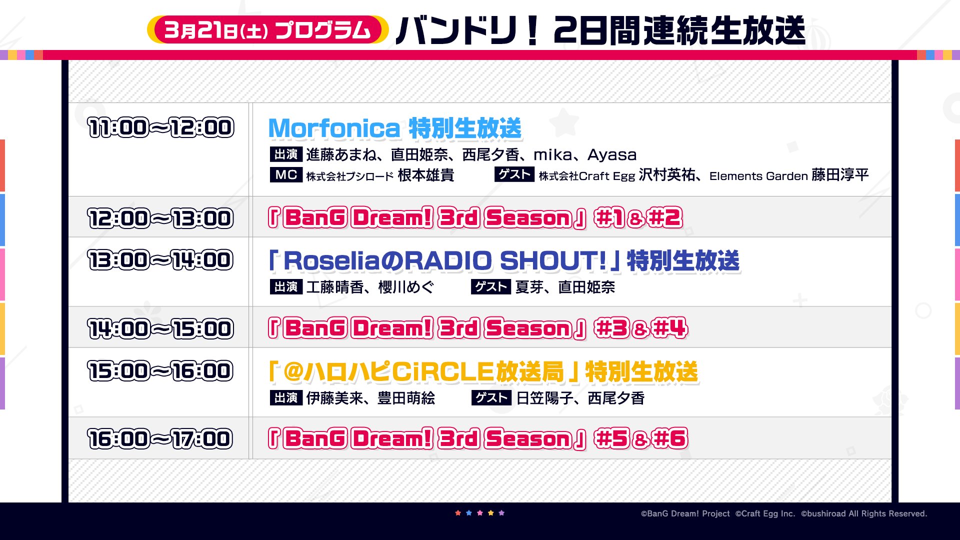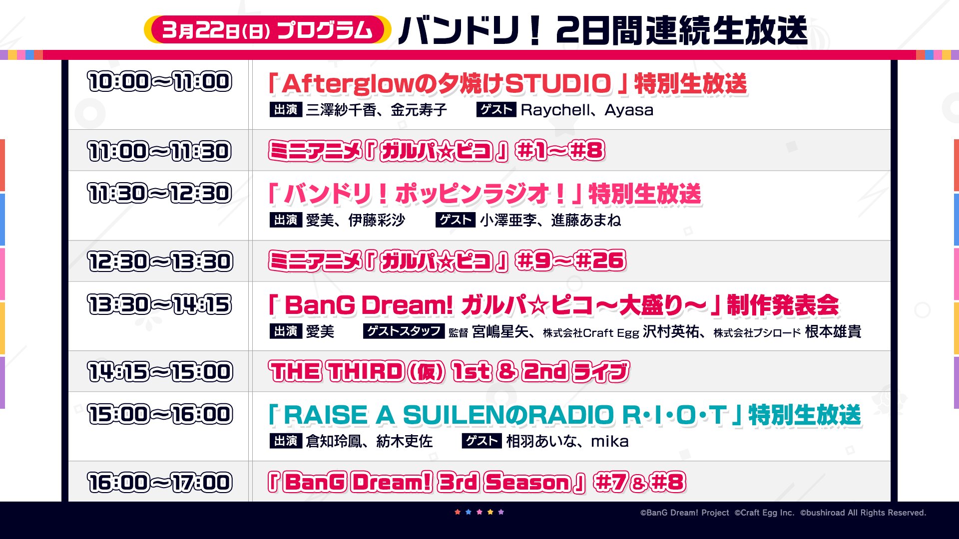 ラジオ番組の生放送や、「BanG Dream! ガルパ☆ピコ~大盛り~」の制作発表会まで、見どころ満載です♪