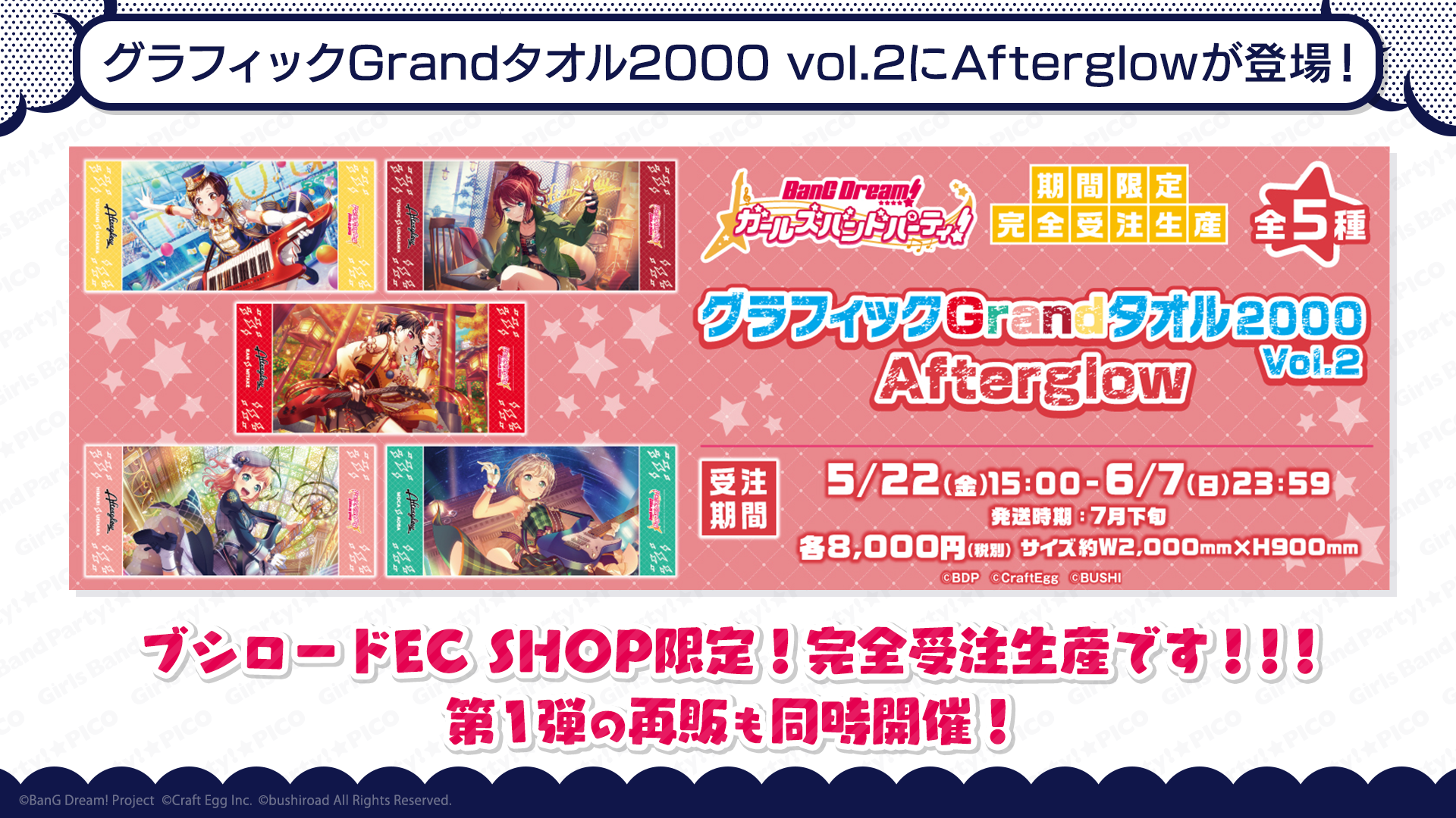 スマートフォン向けゲーム「バンドリ! ガールズバンドパーティ!」のカードイラストをデザインした「グラフィックGrandタオル2000」の第2弾・Afterglowの発売が決定!