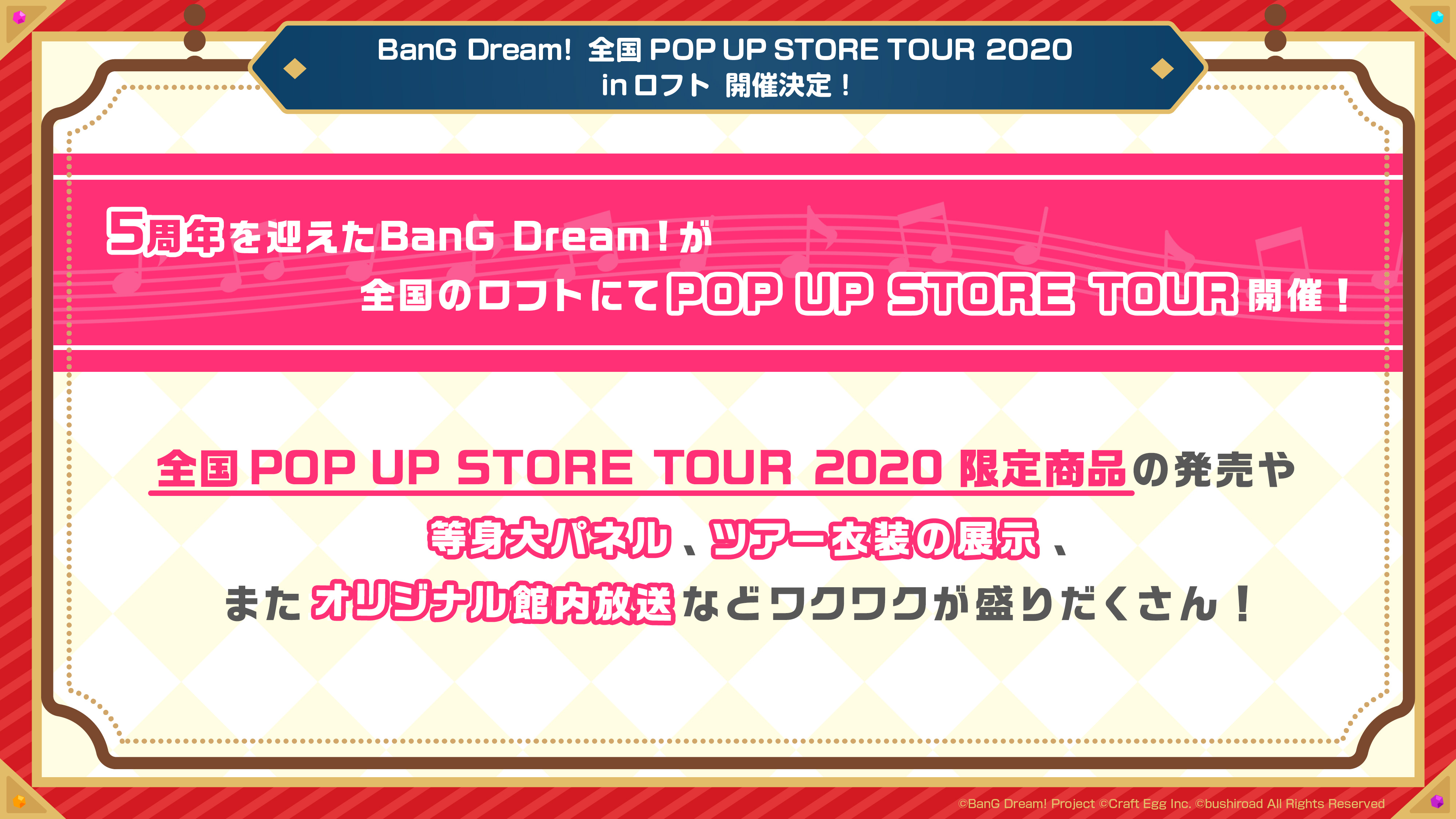 BanG Dream! 全国 POP UP STORE TOUR 2020 in ロフト 開催店舗情報