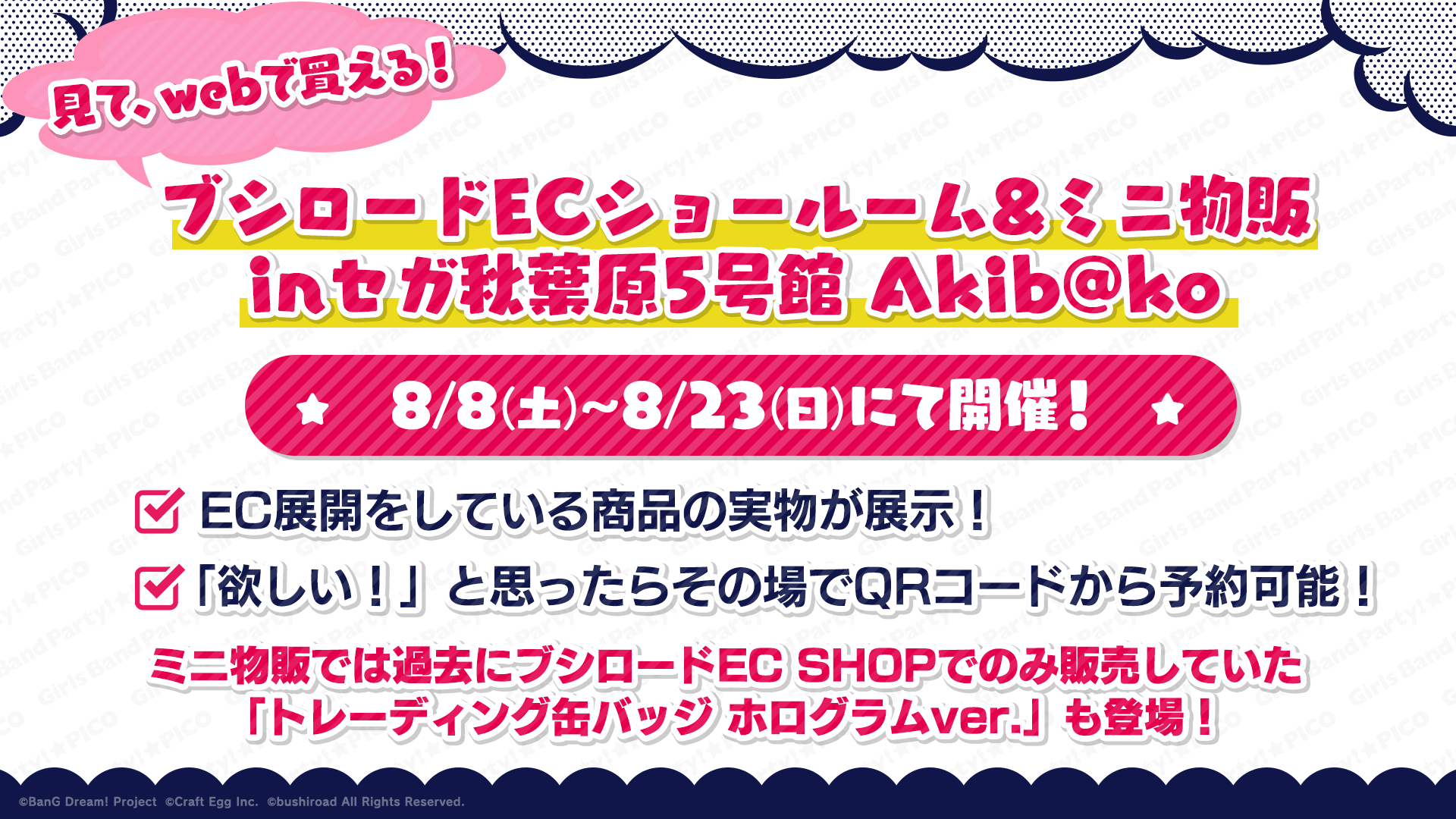 「見て、webで買える」をコンセプトに、「ブシロードECショールーム&ミニ物販inセガ秋葉原5号館 Akib@ko」が開催決定!