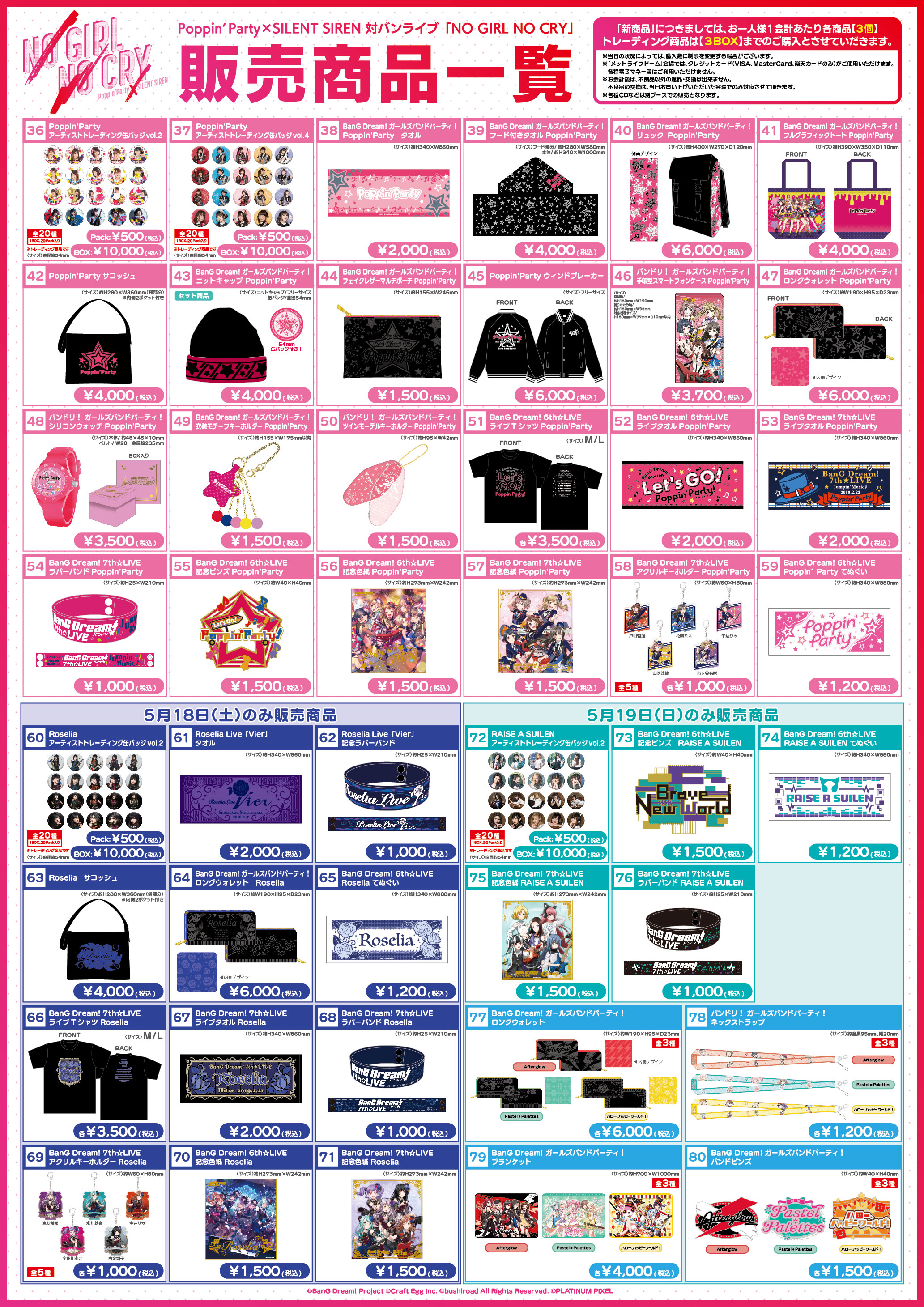 「NO GIRL NO CRY」ライブグッズ販売についてのご案内