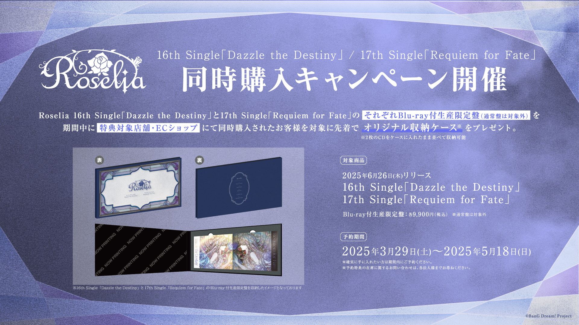 Roselia 16th Single「Dazzle the Destiny」・ 17th Single「Requiem for Fate」好評発売中!